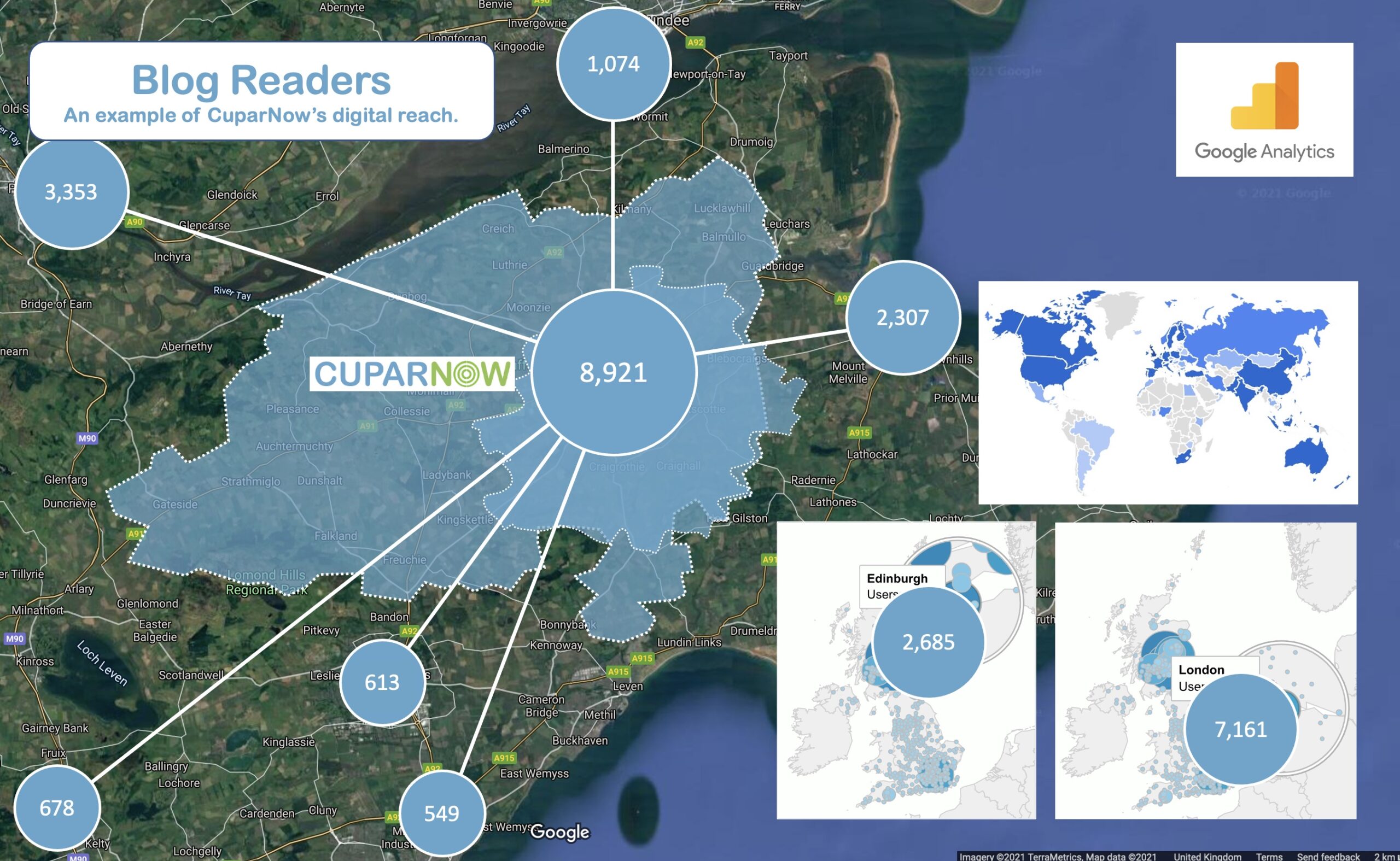 Fellow Director, Bill Harvey, explains: “At the outset, CuparNow was an unproven project – there was no umbrella organisation gathering, creating or sharing content and information. Five years on, our daily support has helped to build a combined digital audience that tops 130,000. Ongoing, if businesses and organisations value what we do, they can use our subscription and advertising services. The revenue we generate will enable us to continue delivering support for the town and wider community. The more who support us, the more benefit we can deliver in return.”