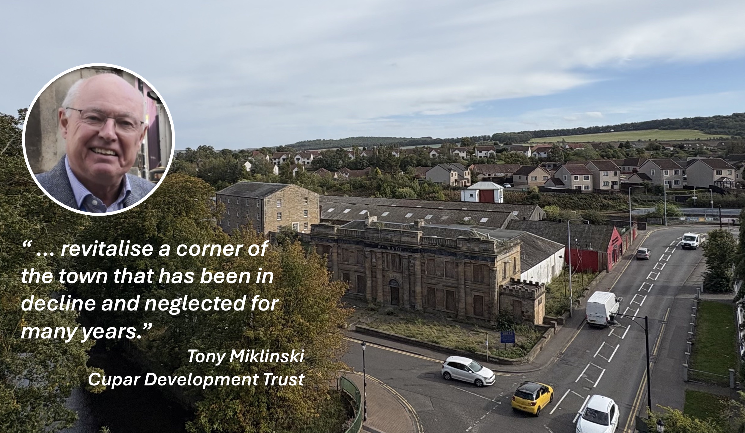 Tony Miklinski, Chair of Cupar Development Trust, welcomes the news saying: “Bringing such a dynamic redevelopment scheme to a site of historical importance is a real challenge. The regeneration of a listed building, the creation of new retail units, parking provision and the proposed drive-thru will revitalise a corner of the town that has been in decline and neglected for many years. We have supported Andrew’s plans and wish Stone Acre every success.”