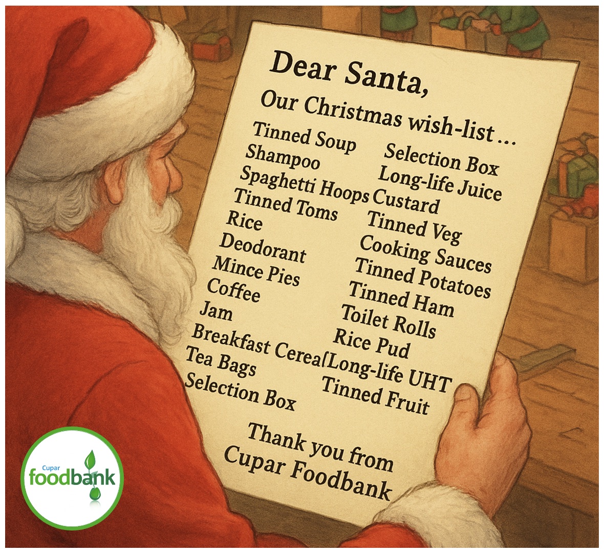 - 𝗛𝗼𝘄? Pop the item we feature (or something similar) into a box at home, your place of work or in your school and – come Monday 1st December – drop your gathered items into the Food Bank in Cupar. They will then manage their distribution to those most in need as they count down to Christmas.